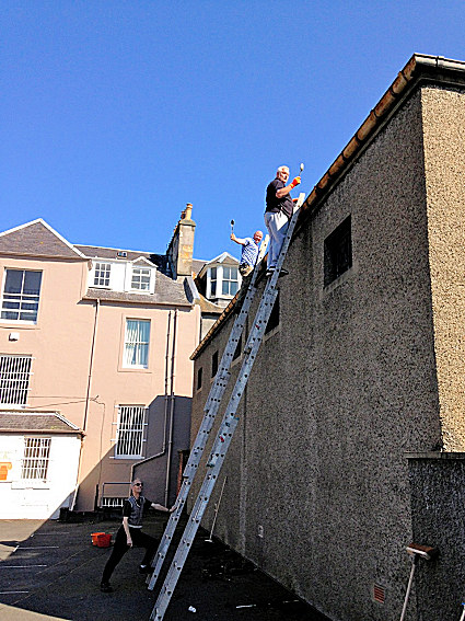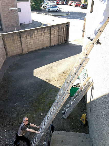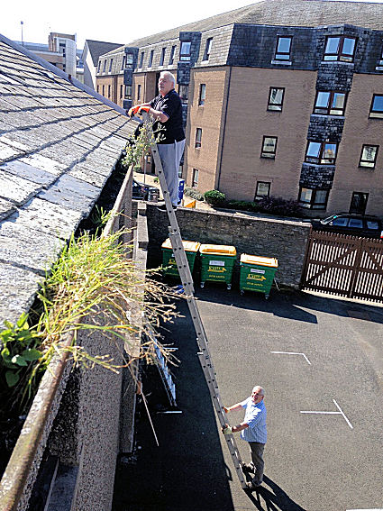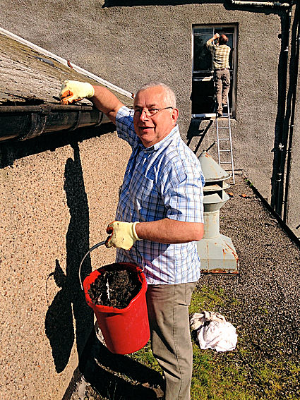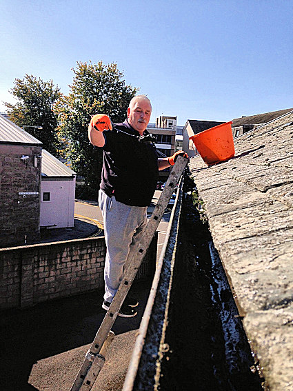 R.W.M. Brother James Thomas tackles the long overdue gutter clearances!